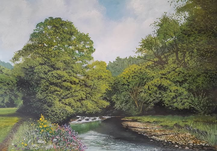 Becoming an artist in retirement was never on the agenda. We moved to the East Midlands in 2021 (at the age of 63) and I decided at that point to give art a go. I had seen a you tube video on acrylic paint pouring and it looked like something I would enjoy. I tried it and couldn’t get it to work, but then thought I would give more traditional painting a go and found my happy place!